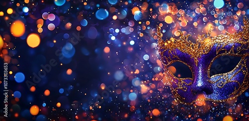 A carnival banner with a masquerade mask