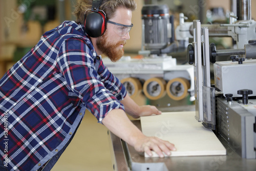 a carpenter using industrial machinery