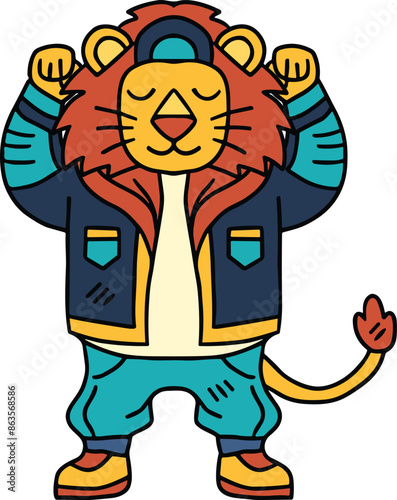 A cartoon character is wearing a jacket and pants