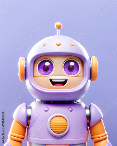 A cartoon robot with a smiling face, depicted in bright colors and with detailed 3D rendering.