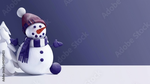 A charming watercolor illustration of a cute snowman with a red hat and a purple scarf, smiling joyfully.