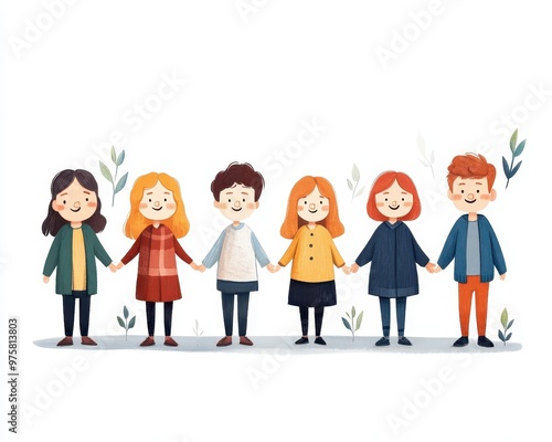 A cheerful group of diverse children holding hands symbolizing friendship unity and joy in a colorful