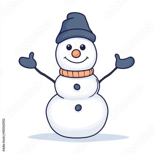A cheerful snowman with a hat and scarf, welcoming winter festivities.