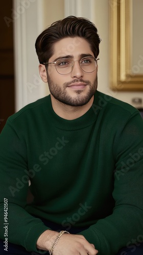 A cheerful young Indian man stands in a contemporary office space, wearing a hoodie and glasses, showcasing a relaxed and confident demeanor while smiling warmly