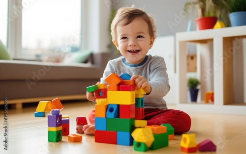 A child plays with building block toys in its own room