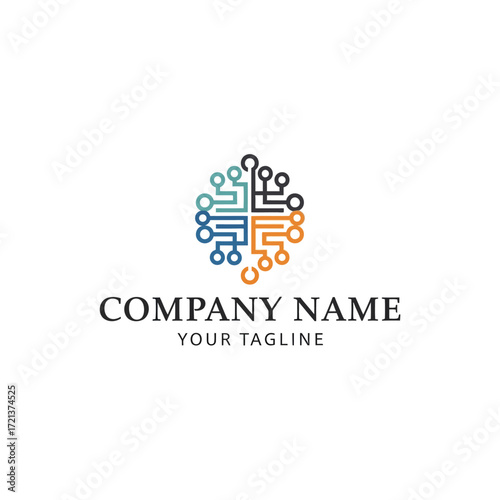 A circular logo with a circuit board pattern in four different colors, representing technology and connectivity.