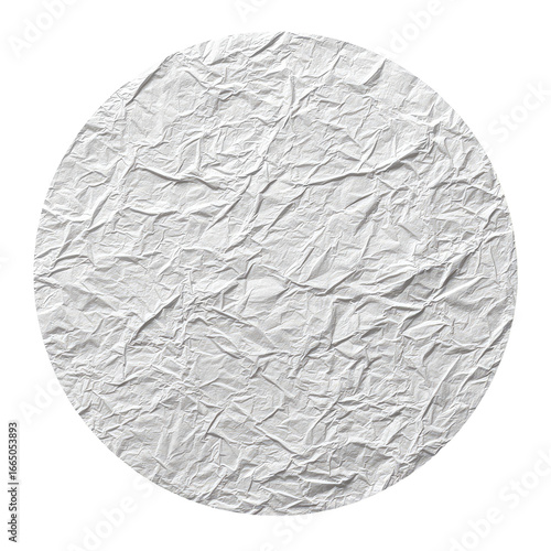 A circular, textured surface. Wrinkled, light gray material forms a circle. Smooth edges