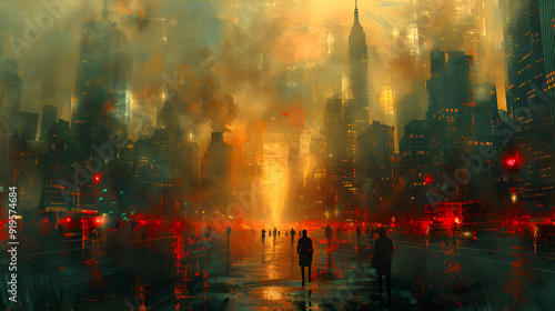 A cityscape with a mix of precise, geometric shapes and soft, dreamy colors, creating an abstract image that captures the essence of an urban environment