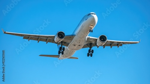 A civil jet airliner takes off, its powerful engines roaring as it ascends into a clear blue sky, representing the marvel of modern aviation