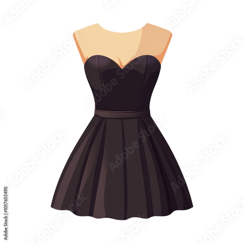 A classic black cocktail dress with a sweetheart neckline and a fitted bodice, displayed on a mannequin isolated on transparent background, cut out, png, perfect for fashion illustrations, website