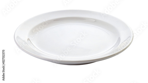 A clean white dinner plate sits empty and isolated on a white background