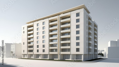 A clear and crisp PNG of an urban residential building with modern architectural elements, perfectly isolated on a white background.