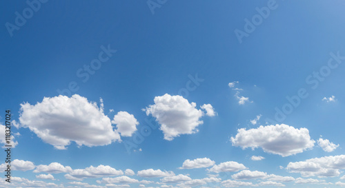 A clear blue sky with soft white clouds drifting lazily, the simplicity of the scene evoking peace and openness