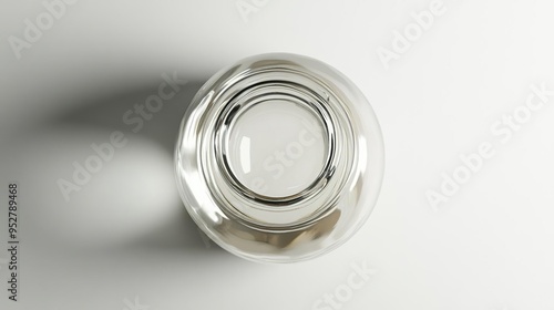 A clear glass bowl viewed from above, showcasing its circular shape and reflective surface.