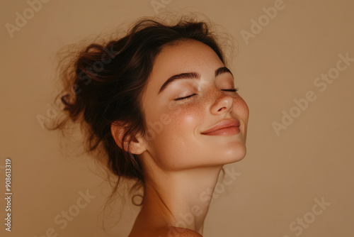 A close up of a girl's face with her eyes closed