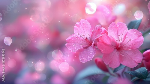 A close up of a pink flower with water droplets on it