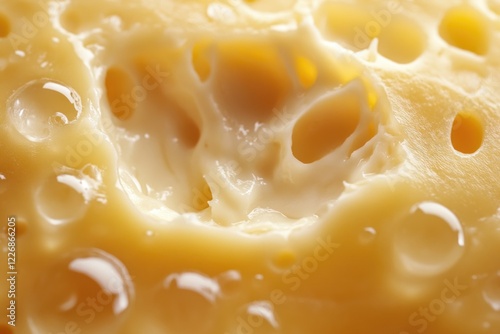 A close up shot of a cheesy food, possibly cheddar, with its characteristic foam on top. The cheese is melting and the inside appears to be full of air bubbles.