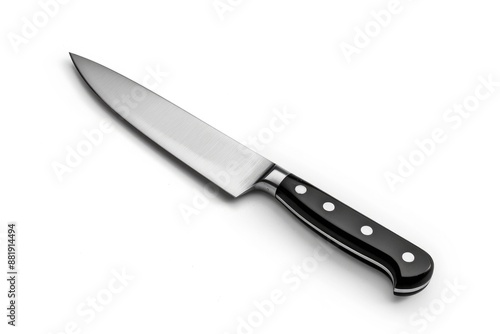 A close-up of a black and white knife on a white surface, great for food or product photography