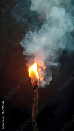 A close-up of a lit match with smoke rising, capturing the moment of ignition and the delicate swirl of smoke.