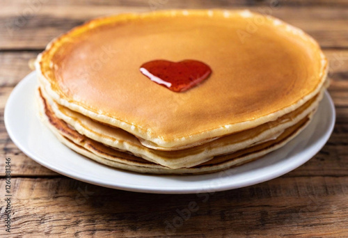 A close-up of a pancake with a heart shape, symbolizing love for Dad on Father's Day