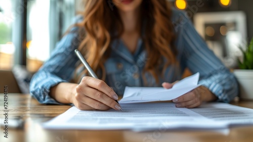 A close-up of a real estate agent meticulously reviewing and organizing paperwork