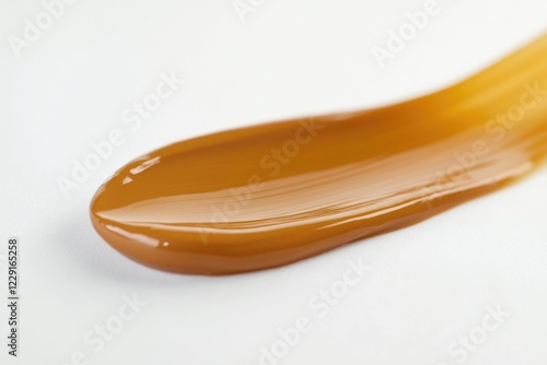 A close-up of a spoon holding a small amount of liquid on a white surface