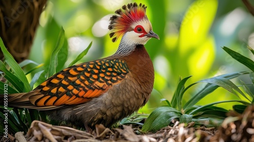 A Close-Up of a Vibrantly Colored Bird with a Red and White Crest