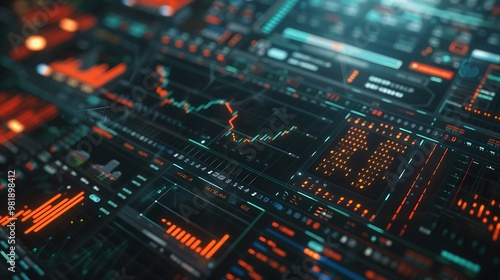 A close-up of an AI-powered financial trading system analyzing market data and executing transactions.