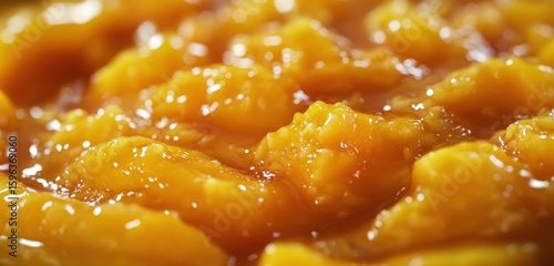 A close-up of mango sticky rice, captured in exquisite detail with rich textures, vibrant colors, and a beautifully composed background that highlights the freshness and visual appeal of the dish.