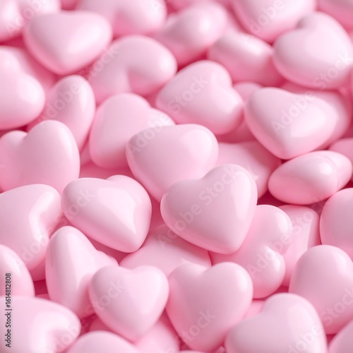 A close-up of many small, light pink hearts