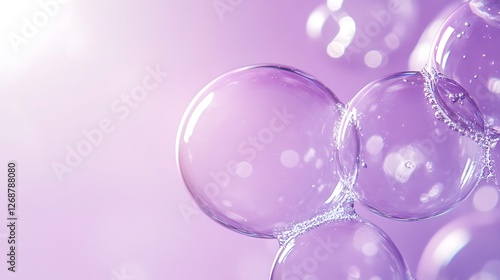 A close-up of water droplets on a purple gradient surface, reflecting light.