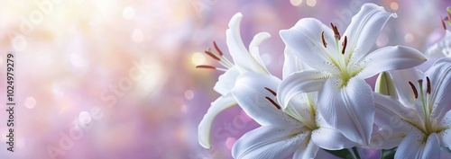 A close-up of white lilies against a soft, blurred background, evoking tranquility and beauty.