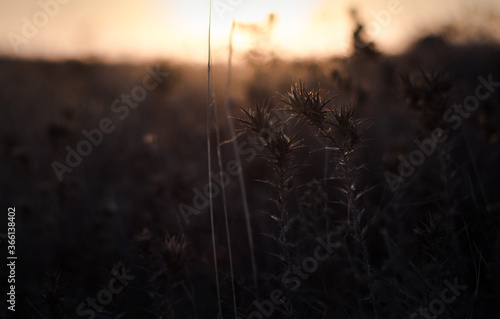 A close-up photo of a thorn plant during the magical sunset.