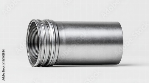 A close-up shot of a metallic cylinder with precision threading, likely an industrial component.