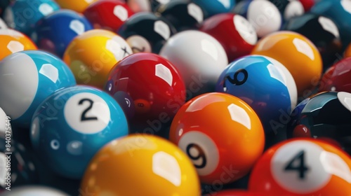 A close-up shot of a pile of pool balls with numbers on them, suitable for use in sports-related contexts or as a decorative element