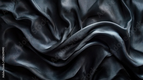 A close-up shot of dark grey fabric with soft, flowing folds, showcasing its smooth, silky texture and luxurious feel.