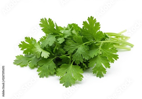 A close-up shot of fresh cilantro, a popular and versatile herb, displayed against a clean white background.