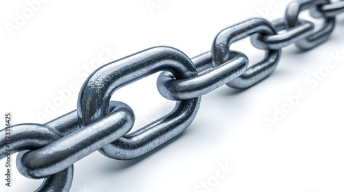 A close-up shot reveals a strong metallic chain with interconnected links against a pristine white background illustrating strength and unity.