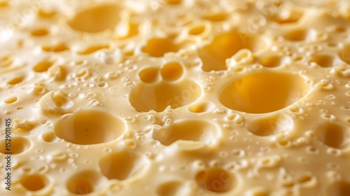 A close-up view of a delicious cheese with distinctive holes shows the beauty of texture and flavor, inviting viewers to appreciate culinary arts and gourmet delights.