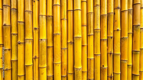A Close-Up View of a Wall of Yellow Bamboo Stalks, Exposing Their Natural Texture and Interlocking Nodes
