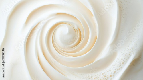 A close-up view of creamy, swirling white texture, reminiscent of whipped cream or frosting.