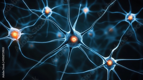 A close-up view of interconnected neurons displaying glowing structures, illustrating the complexity of the nervous system.