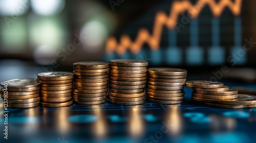 A close-up view of stacks of coins symbolizes financial growth and investment strategies, highlighting the importance of saving and wealth accumulation in today's economy.