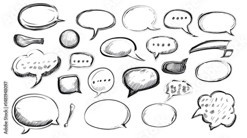 A collection of hand-drawn speech bubbles in various shapes and sizes, perfect for graphic design projects.