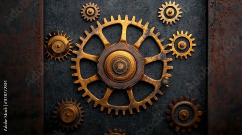 A collection of intricately designed golden gears on a textured background, symbolizing mechanical ingenuity and vintage aesthetics.