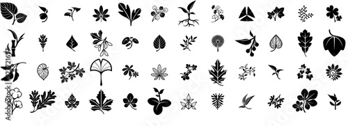 A Collection Of Leaf Isolated Silhouette Solid Icons With Nature,Fall,Leaf,Autumn,Plant Infographic Simple Vector Illustration Logo