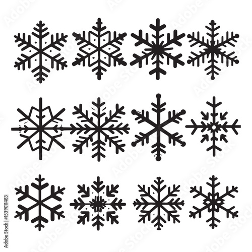 A Collection of Unique Black and White Snowflake Designs on White Background