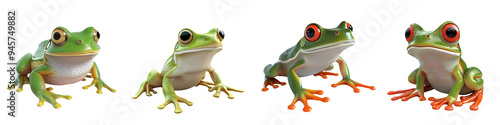 A collection of vibrant frogs displaying various poses and expressions, showcasing their colorful appearance and unique features.