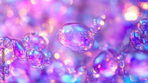 A colorful, abstract background with many small bubbles of different sizes. The bubbles are all different colors, including purple, pink, and blue. Scene is playful and whimsical
