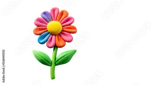 A colorful clay flower isolated on transparent background
